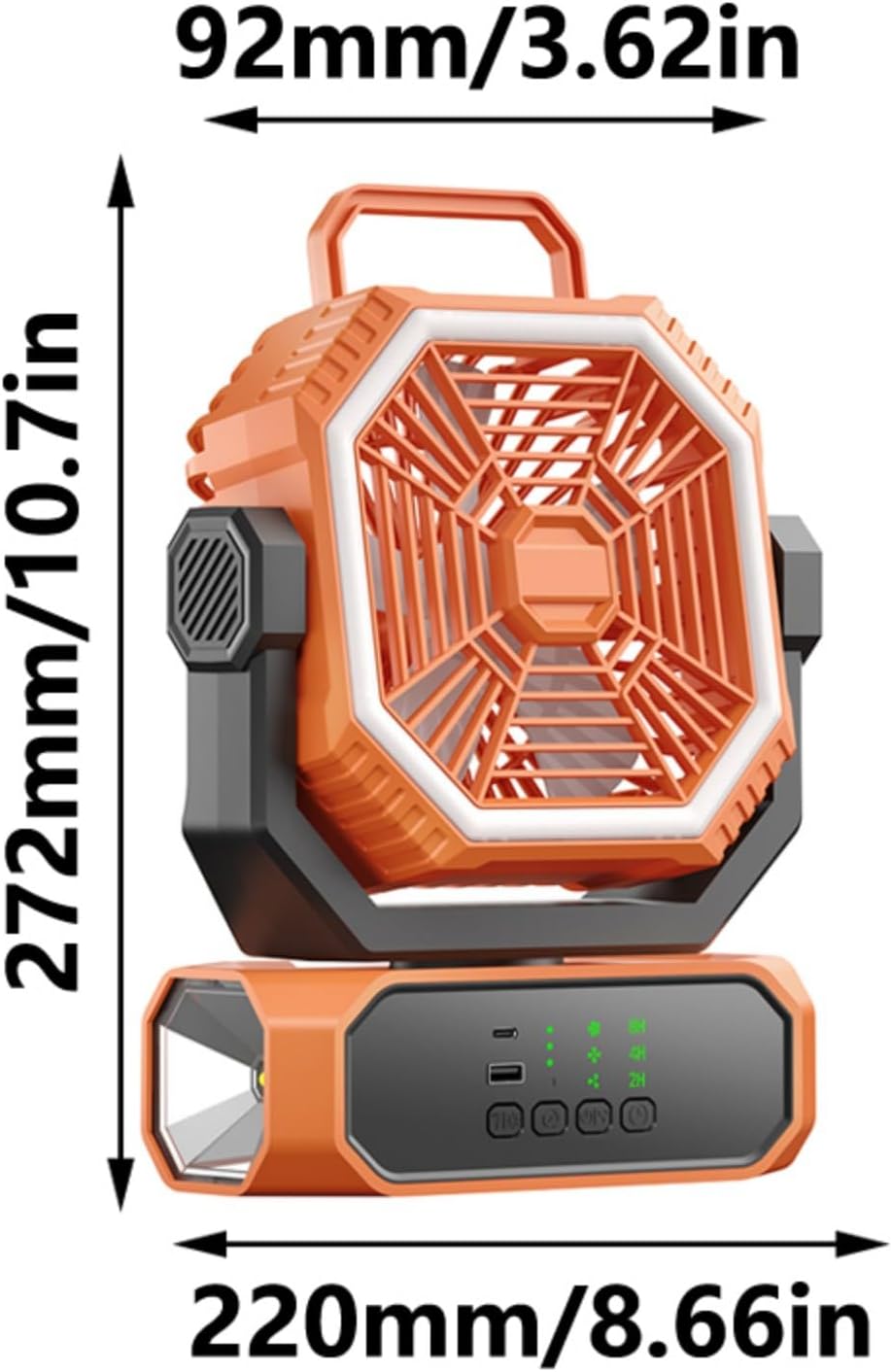 Tent Misting Fan 20000mAh 10000mAh Rechargeable With LED Lanternn And Automatic Oscillation For Outdoor UseFeatures:Stay cool and comfortable on outdoor with Camping Mists Fan, Powereds by 20000mAh, 10000mAh rechargeable battery that provide up to 50hours of operations on a single charging.This portable misting fan features five adjustable speed, automatic oscillation function, and builts in LED Lanternn with three color temperature option, ensuring for any occasion.for outdoor, this fan for campers, hiker, and anyone who loves spending time in nature while needing cooling and lighting.Whether camping, picnicking, fishing, or enjoyings a barbecue, the fan 270° manual vertical and 45°/90° horizontal automatic oscillation ensures wide coverage and airflows in tents or open.Equipped with 360 rotating hook for easy hanging and USB port for reverse charging, this fan double as a powerbank, making it essential tool for both indoor and outdoor Activity.Specifications:Materials: Size 220x92x272mm 8.66x3.62x10.7inch Styles 20000mAh, 10000mAh(optional)Package Includes:1Set Portable Camping FanNote:Please allow 0-1cm error due to manual measurement. make sure you not mind before bid.Due to the differences between different monitors, the picture may not reflect the actual of the item.