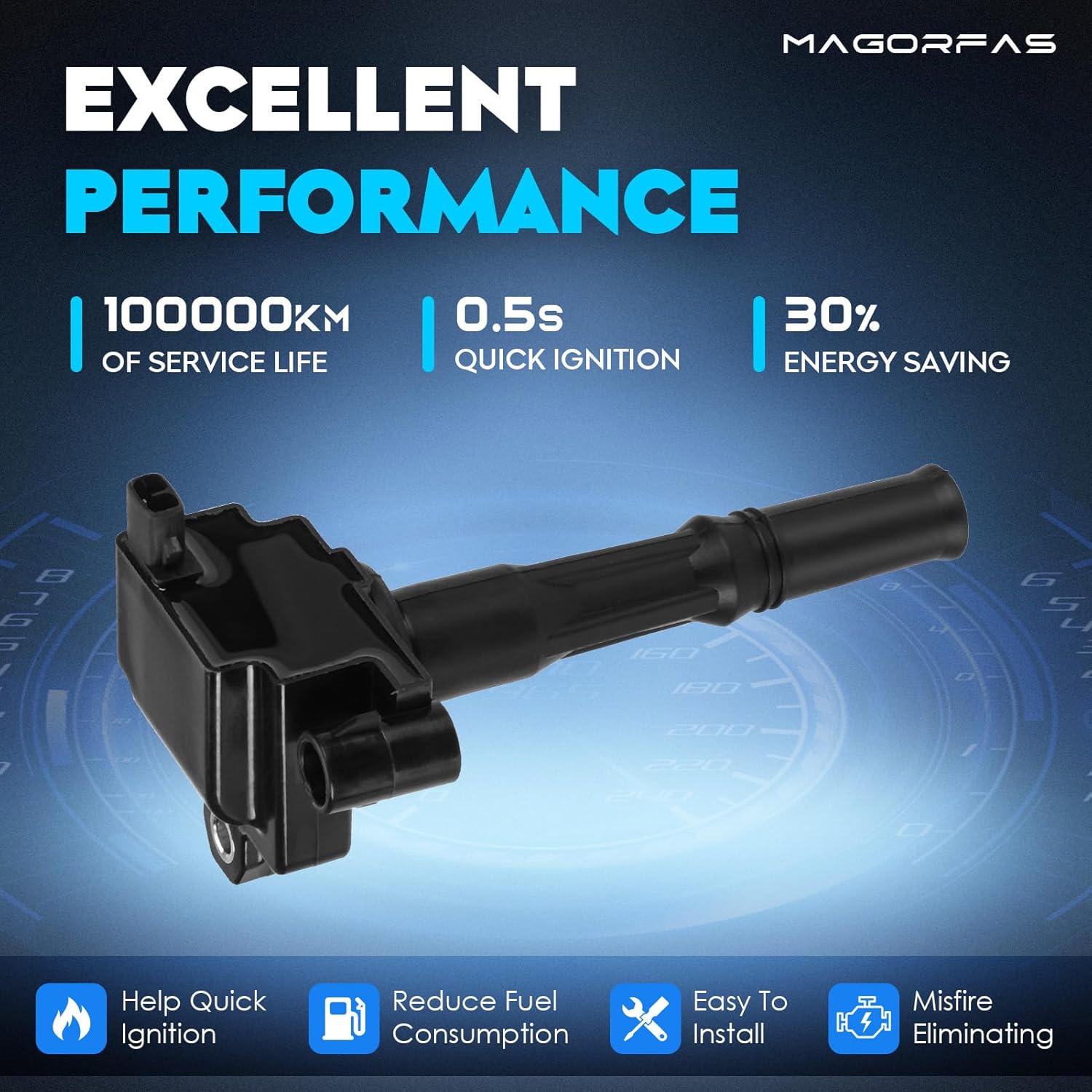 Magorfas Ignition Coils--No more stuttering, and quicker start off!100000km of service life0.5s quick ignition30% energy savingCompatible with Toyota:Fit for 4Runner 1996-2002 3.4LFit for T100 1995-1998 3.4LFit for Tacoma 1995-2004 3.4LFit for Tundra 2000-2004 3.4LPackage Includes:3 * Black Ignition Coils3 * Ignition Wires6 * Spark PlugsReplaces for:Uf156, C1041, E589, 5c1308, E679, 52-1519, Ic223, 88921336, 88921337, Uf-156, 90919-02212 All Magorfas products provide 12-month service.Please check your vehicle model according to the Amazon model list to avoid wrong purchases and returns. Remember to prevent putting the ignition coils in a hot or wet environment.