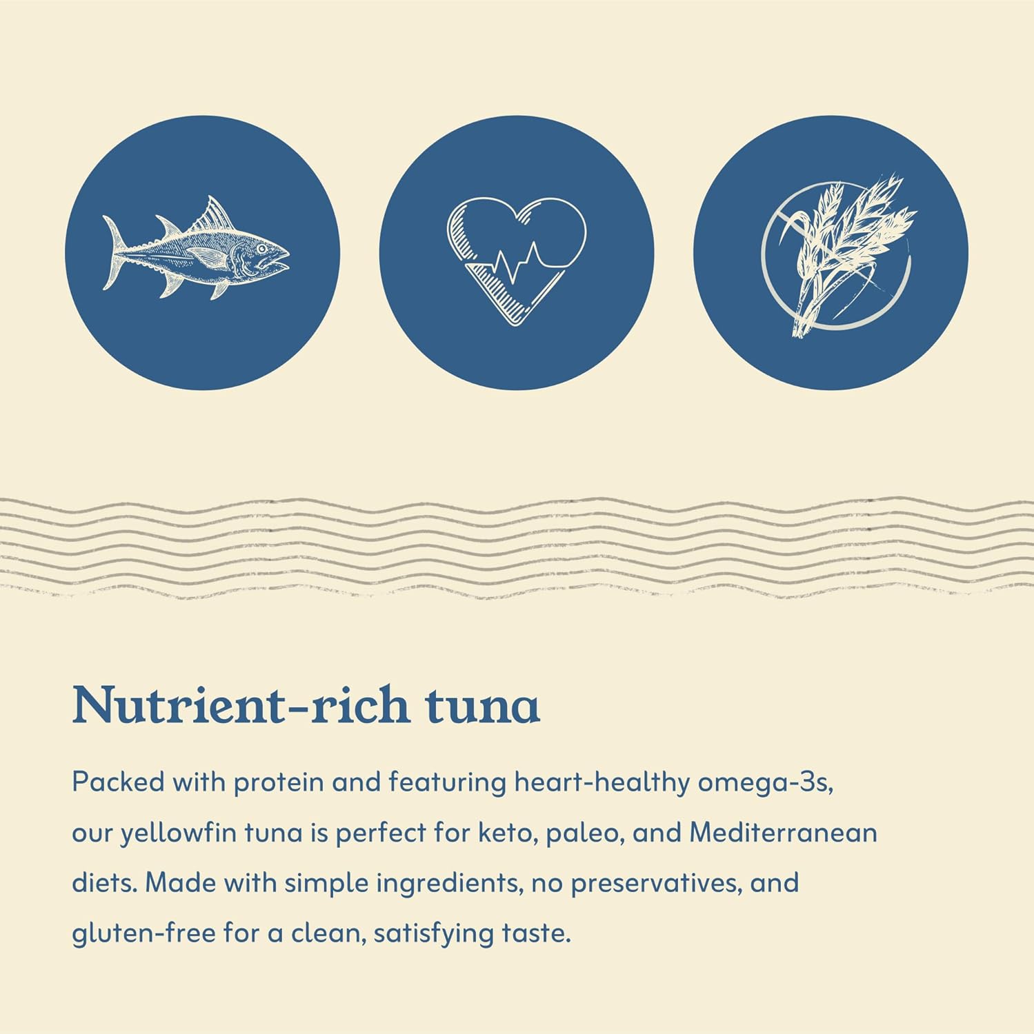 CLEAN, LIGHT FLAVOR: Light and versatile, Van Camp’s Seafood Solid Light Yellowfin Tuna in Water delivers 29 grams of protein. It’s an ideal choice for fresh salads, low-fat wraps, and protein-packed snacks. DELICIOUSLY VERSATILE: Bursting with rich flavor and packed with protein, our yellowfin tuna brings effortless indulgence to every meal. Perfect for salads, pastas, wraps, and more—try it in your favorite recipes for a savory upgrade. NUTRIENT-RICH TUNA: Packed with protein and featuring heart-healthy omega-3s, our yellowfin tuna is perfect for keto, paleo, and Mediterranean diets. Made with simple ingredients, no preservatives, and gluten-free for a clean, satisfying taste. WILD CAUGHT TUNA: Our yellowfin tuna is responsibly sourced and wild caught, bringing you quality seafood while prioritizing ocean health. We’re committed to sustainable practices to protect our seas for generations to come. BULK 48 PACK: Save more with our shelf-stable yellowfin tuna in bulk. Ideal for easy meals or a quick, flavorful snack when you need it most