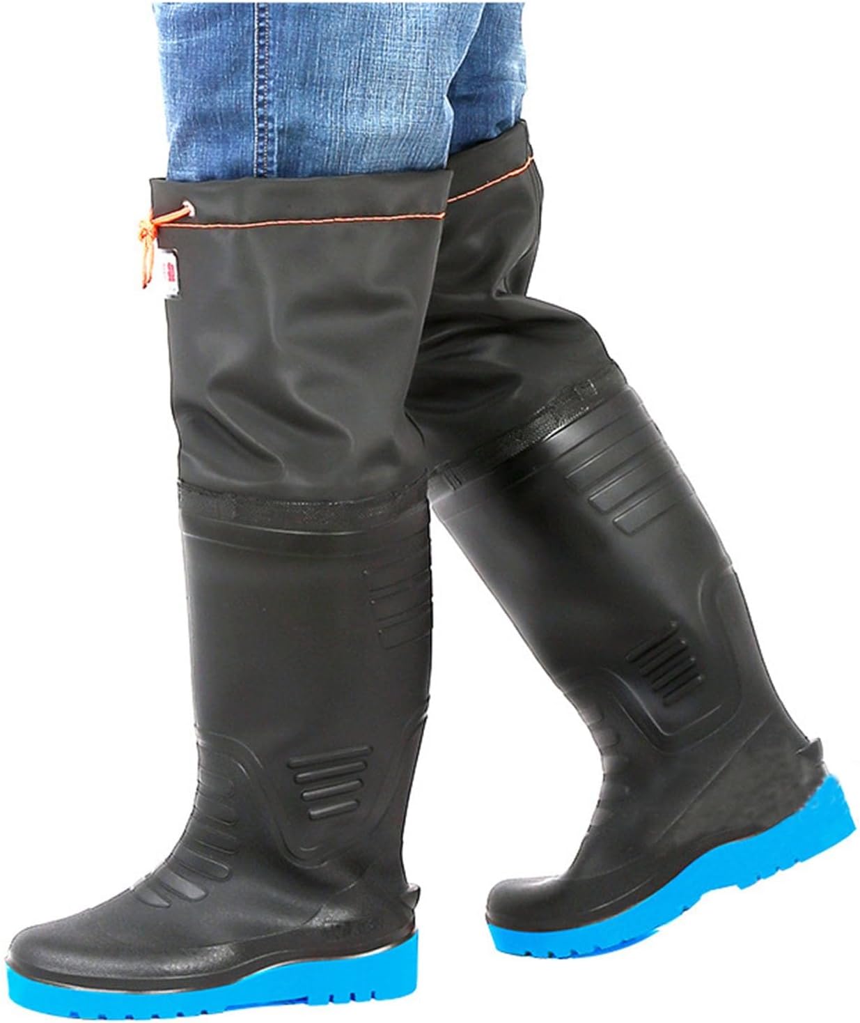 Wading boots are a kind of rain boots specially designed for paddy fields, It has the characteristics of waterproof, anti slip, and wear-resistant. Waders boots are designed to cover most of the calves and even above the knees, which can better block mud and water from splashing into the boots. In addition, the bottom of the fishing boots has an anti-slip design for added stability on slippery grounds.The lightweight bootfoot wader provides exceptional protection, waterproof, durability, convenience, and versatility, and ensures you're well-prepared for any adventure. Waterproof waders for men and women.Product Specifications:Product name: WadersApplicable population: men and womenMaterial: Waterproof PVC + Rubber soleLining: PlushBoots height: 60 cm/23.62 inFunction: waterproof, non-slip, wear-resistant, lightweight, comfortable, breathable, and warmProduct packaging:1 x waders bootAttentionIf you have Bigger Thigh Circumference, please Choose ONE SIZE LARGER than usual. (Please refer size chart).