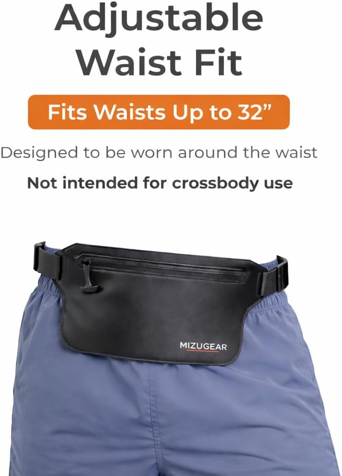 The MIZUGEAR Waterproof Fanny Pack is built to keep your essentials dry wherever the water takes you. With a secure waterproof zipper, heavy-duty TPU construction, and a flexible reinforced strap, it protects your phone, keys, and cash through swimming, snorkeling, kayaking, and beach days. Unlike flimsy waterproof pouches, this fanny pack feels solid and stays comfortable for all-day wear. Spacious enough for today’s larger smartphones yet slim enough to move with you, it’s a reliable companion for boating, paddleboarding, hiking, or simply relaxing by the shore. Submersible and durable, it’s designed for repeated use in saltwater, sand, and sun - so you can focus on the adventure, not your valuables.