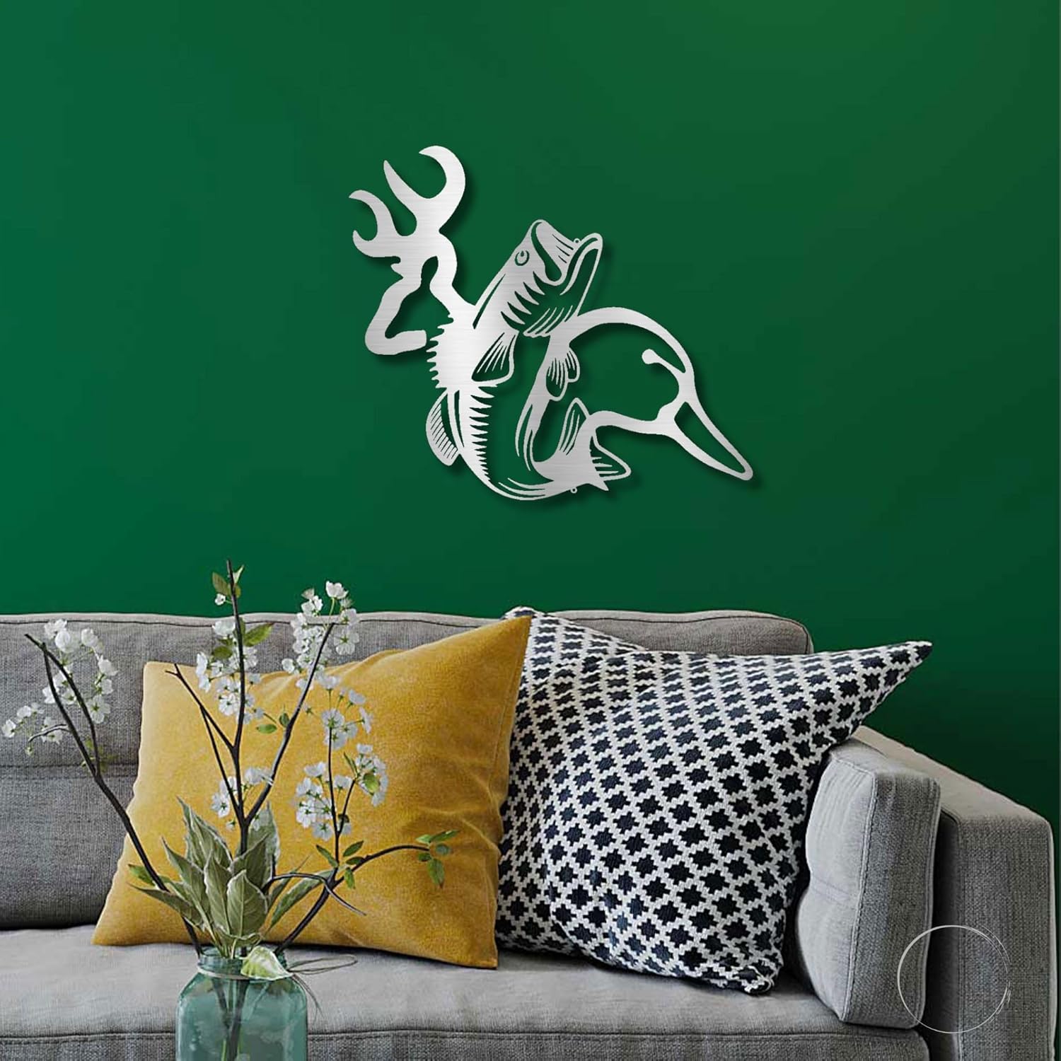 Whether you're a passionate hunter or a weekend fisherman, celebrate your love for the great outdoors with our multi-faceted Deer Duck Fishing Hunting Metal Art Wall Sign. This artwork encapsulates the essence of outdoor sports—fishing, duck hunting, and deer hunting—all in one majestic piece.The piece features icons of deer, ducks, and fish, capturing the full spectrum of hunting and fishing activities.Each piece is skillfully handcrafted in the USA, ensuring you receive an item that matches the highest quality standards.This versatile piece comes in sizes ranging from 12" to 30", making it a perfect fit for a man cave, hunting lodge, or above your garage workshop.An ideal gift for the outdoorsman in your life, be it Father's Day, birthdays, or any occasion that calls for a special gesture. If hunting or fishing is a sport or a passion, this sign is just the thing.Excellent for housewarmings, birthdays, and Father’s Day celebrations. It’s like bringing a slice of the great outdoors into your living space. It’s like bringing a slice of the great outdoors into your living space.12 - 11.5" x 10"15 - 14.5" x 12.75"18 - 17.5" x 15.25"24 - 23.5" x 20.5"30 - 29.5" x 25.75"