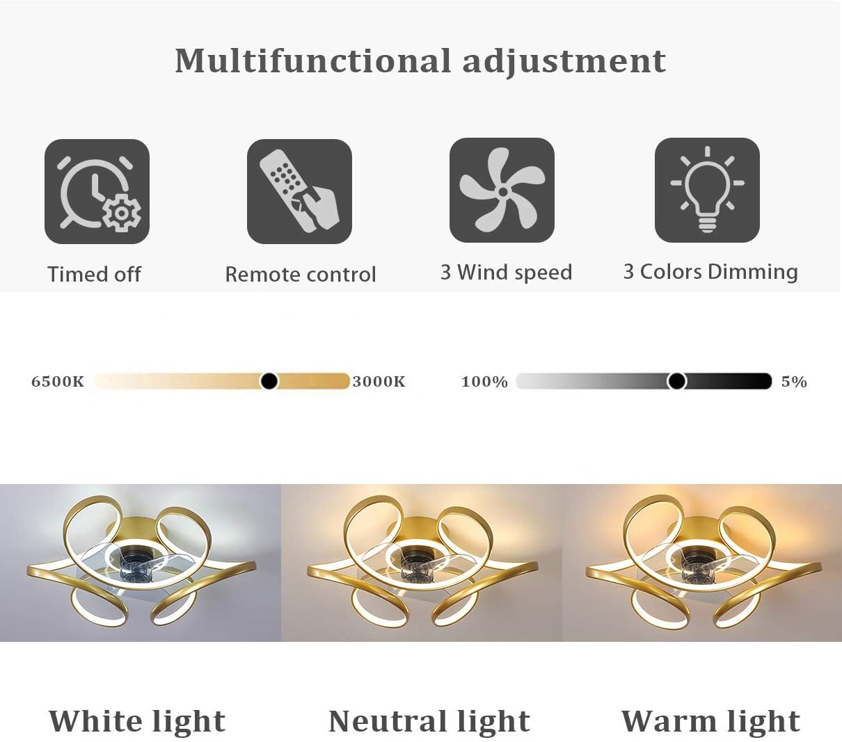 YUEGOO Fan with Ceiling Light,and Remote Control Silence Led Dimmable Bedroom Fan Ceiling Light 3 Speeds Modern Living Room Ceiling Fan Light with Timer